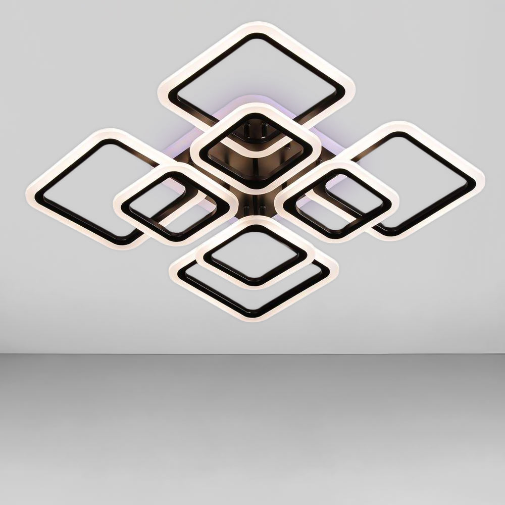 Стельова світлодіодна люстра в сучасному стилі, на вісім джерел світла у вигляді LED квадратів з диммером і RGB з підсвічуванням корпусу.