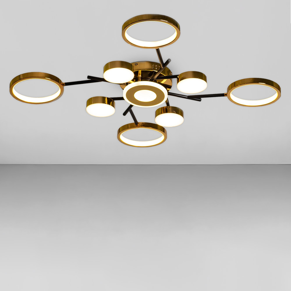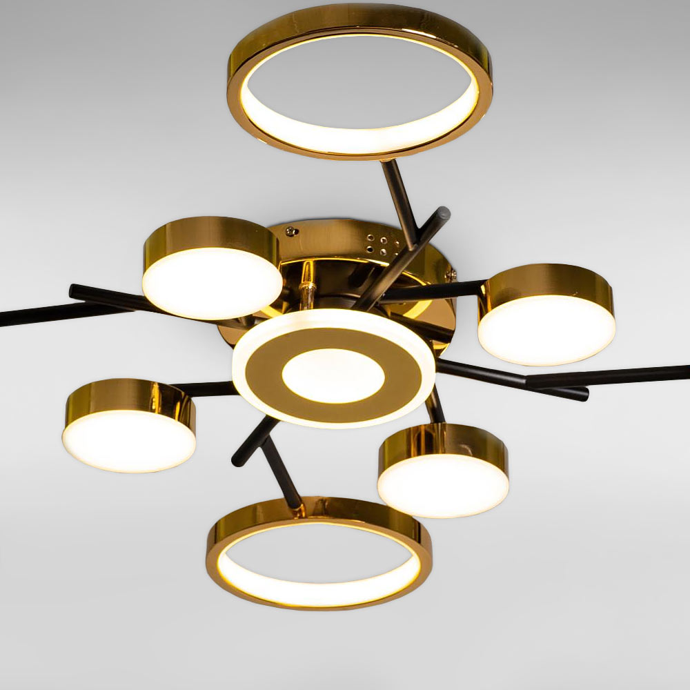 Стельова світлодіодна люстра в сучасному стилі, з пультом управління на дев'ять джерел світла у вигляді LED кілець та кіл.