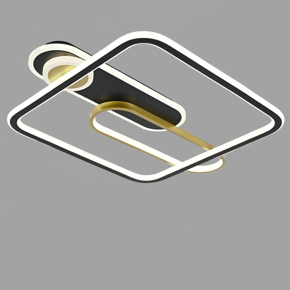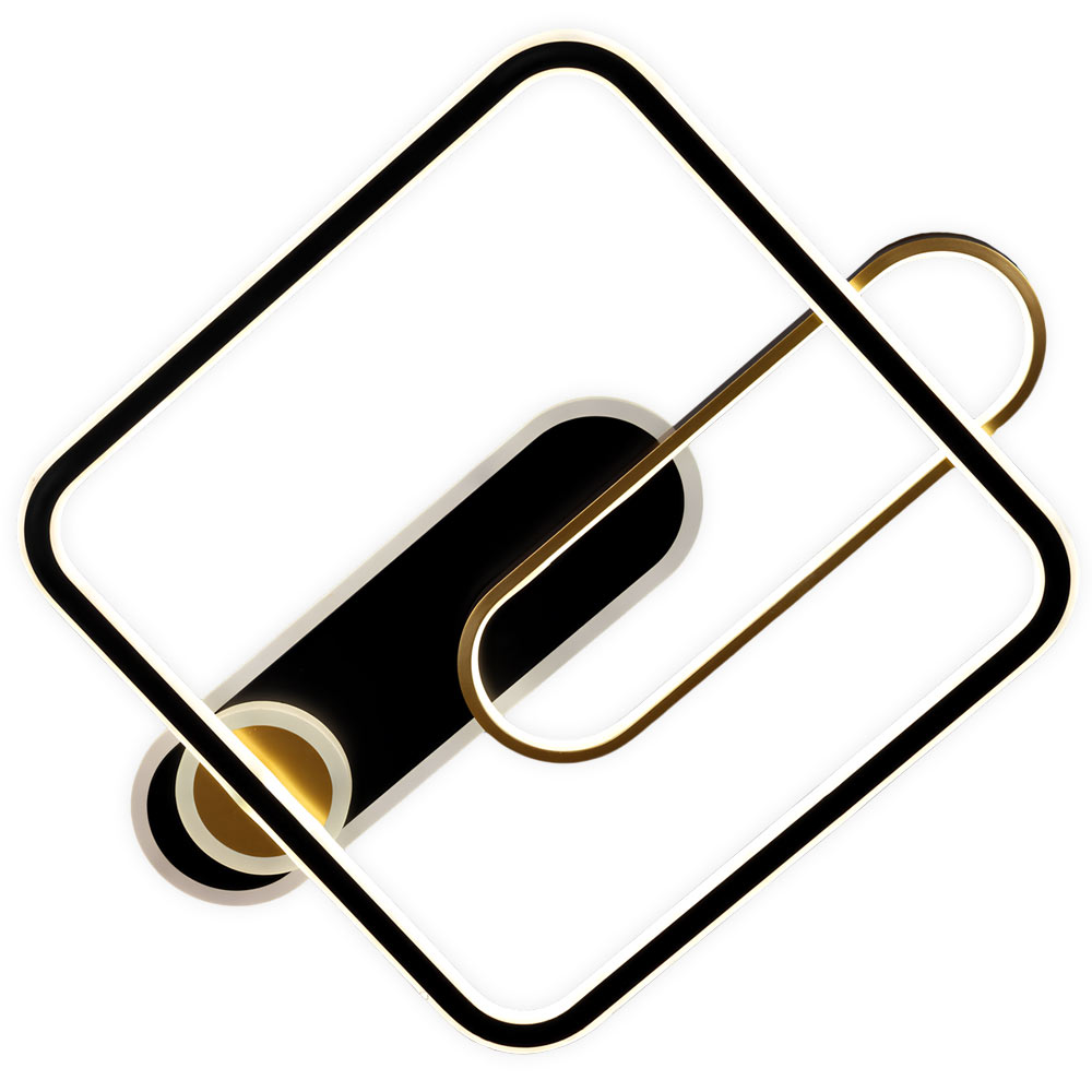 Стельова світлодіодна люстра у сучасному стилі, на два джерела світла овальної плоскої форми та одне джерела світла у вигляді квадрата. Люстра оснащена пультом керування з регулюванням температури свічення.