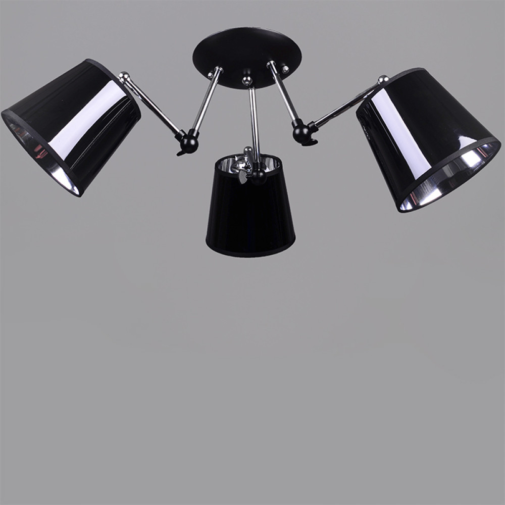 Стельова люстра на три лампи з поворотними плафонами конусної форми.