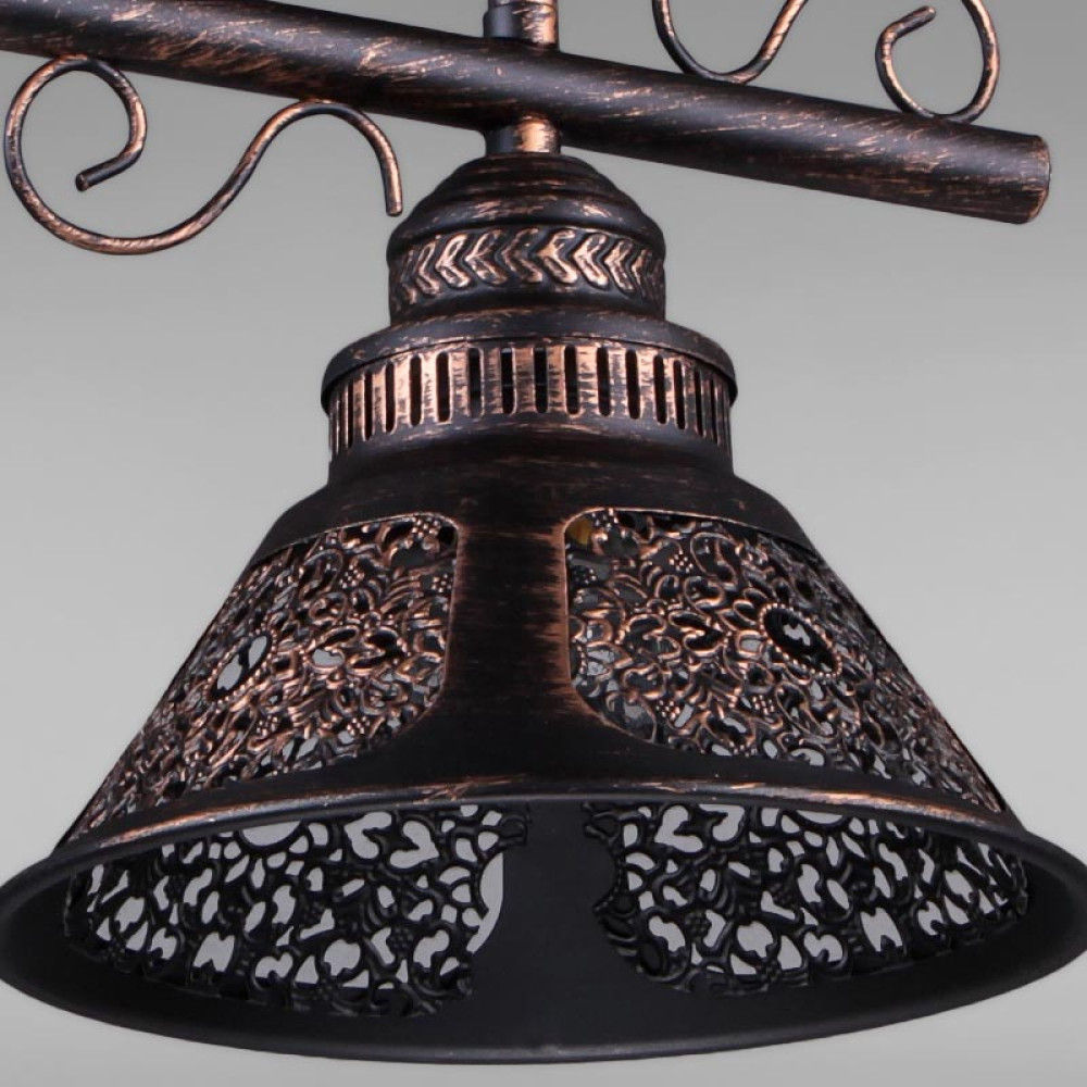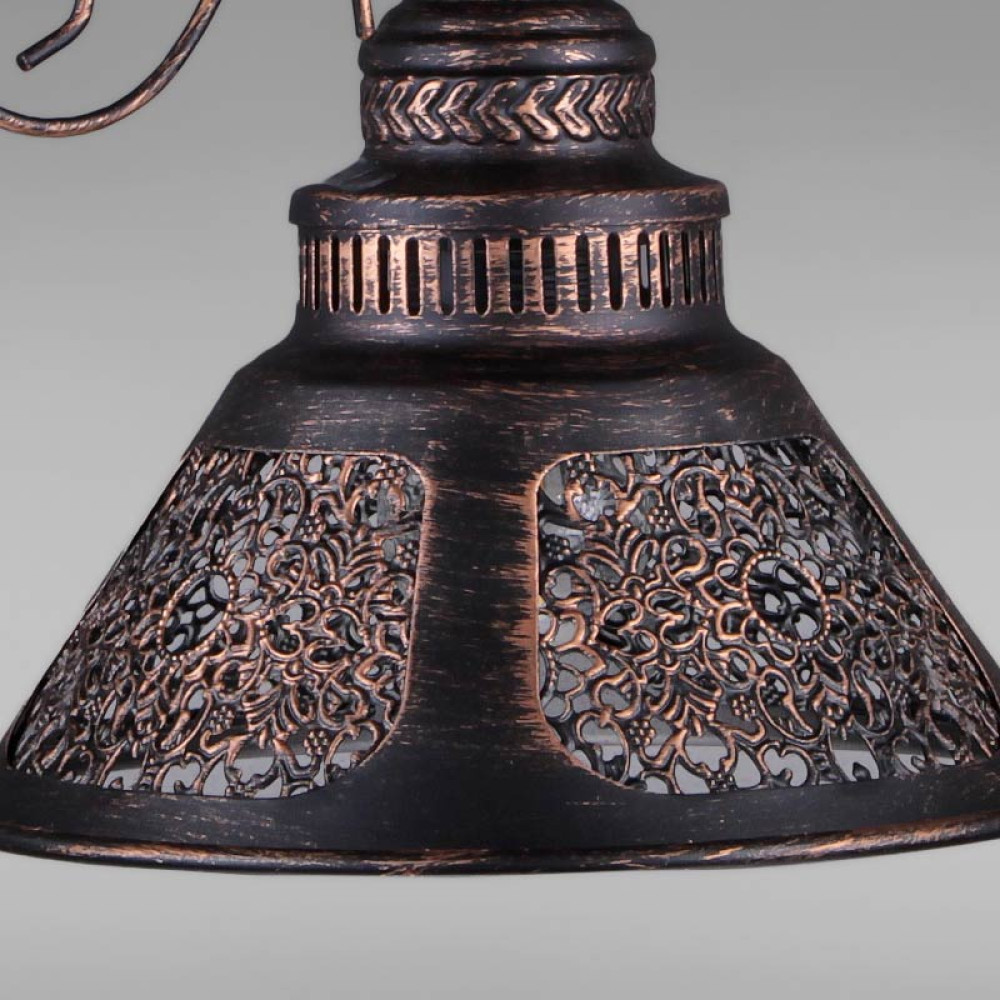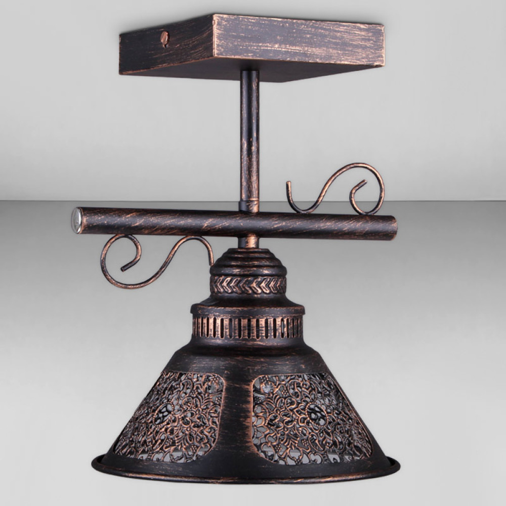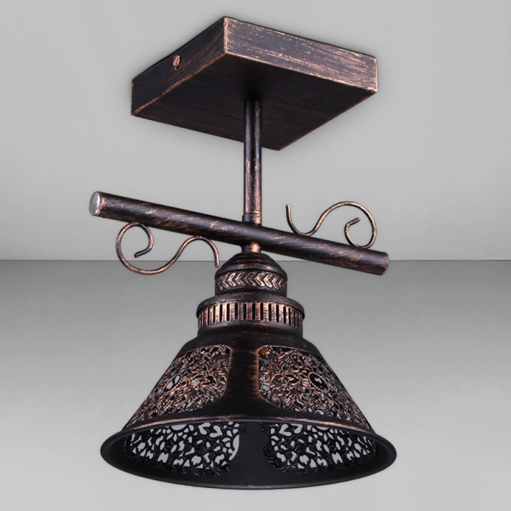 Стельова люстра на одну лампу в стилі Кантрі з металевим плафоном конусної форми та декоративною перфорацією.