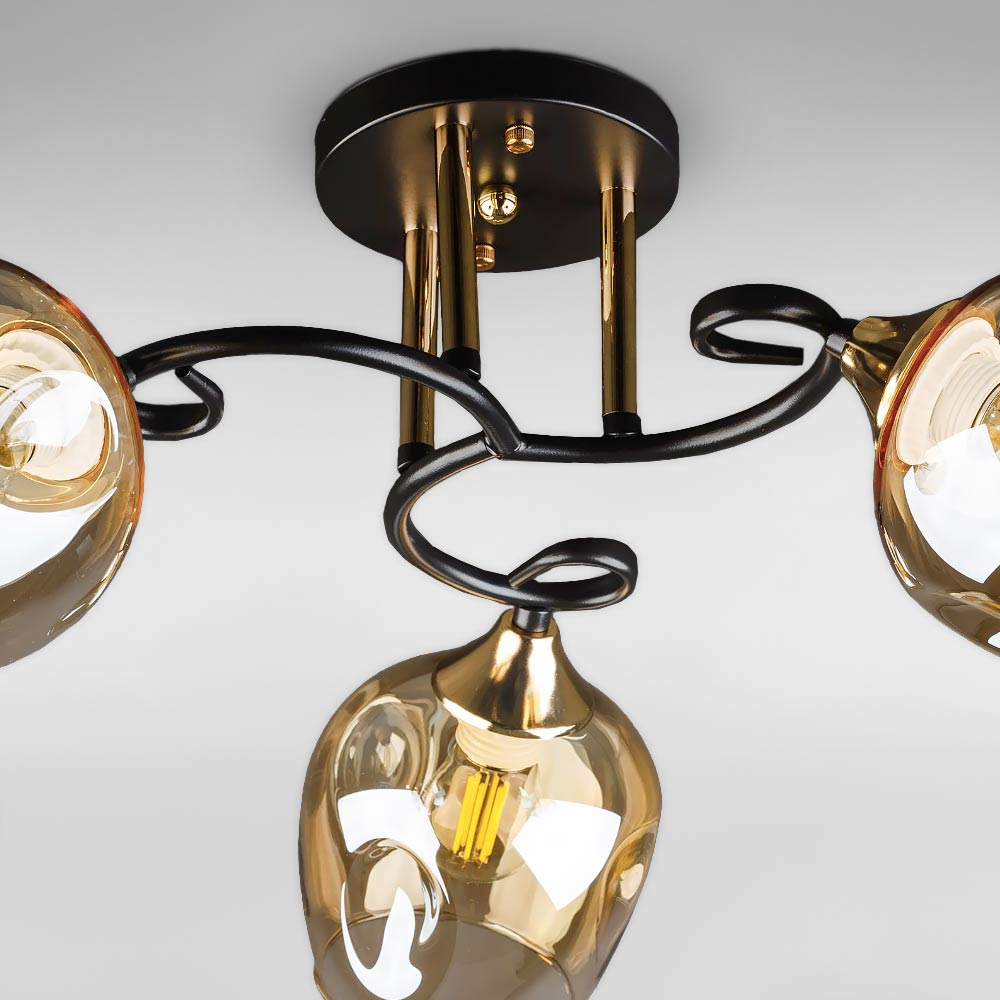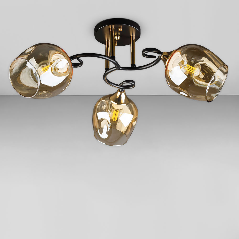 Люстра стельова Light House DL-18663/3 чорна + золото, плафон шампань