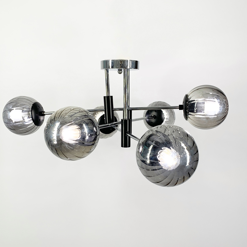 Люстра стельова Light House LF-17376/6 CR+BK+GR чорний + хром, колір плафона графітовий