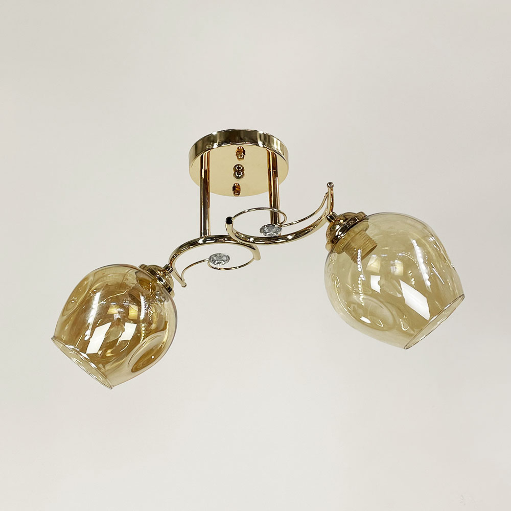 Люстра стельова Light House LNF-17508/2 GD+AM золото з бурштиновим плафоном
