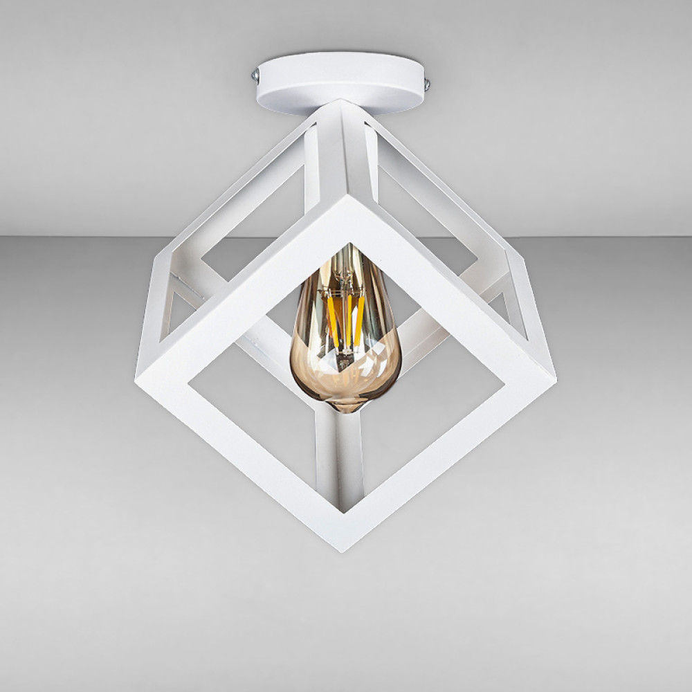 Стельова люстра на одну лампу у стилі лофт із плафоном у вигляді куба.