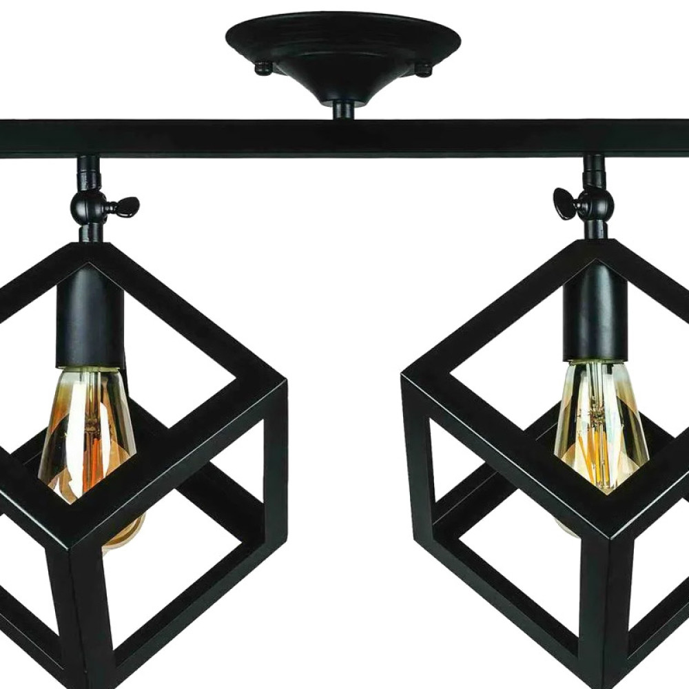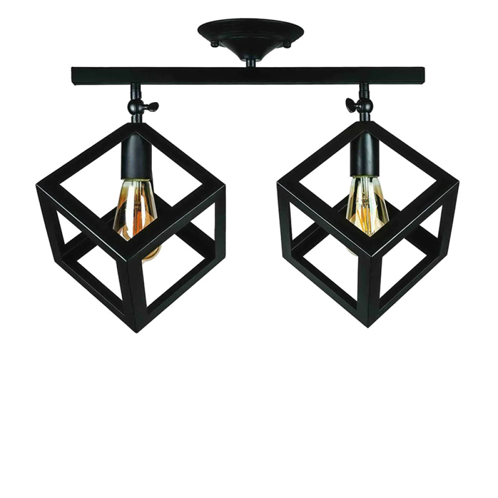 Стельова люстра на дві лампи в стилі лофт з поворотними плафонами у вигляді кубів.