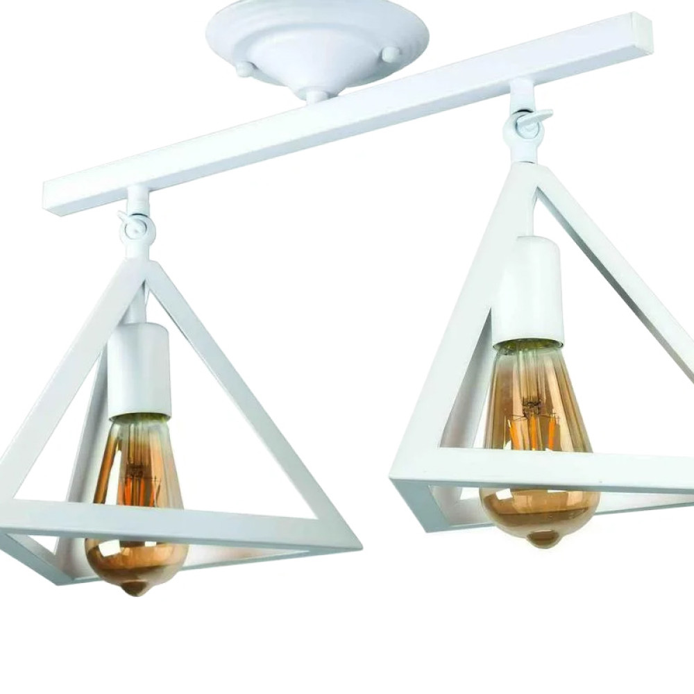 Стельова люстра на дві лампи у стилі лофт із поворотними плафонами у вигляді піраміди.