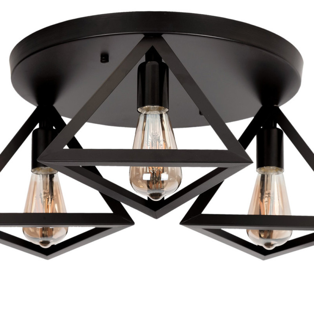 Стельова люстра на три лампи у стилі лофт з плафонами у вигляді піраміди.