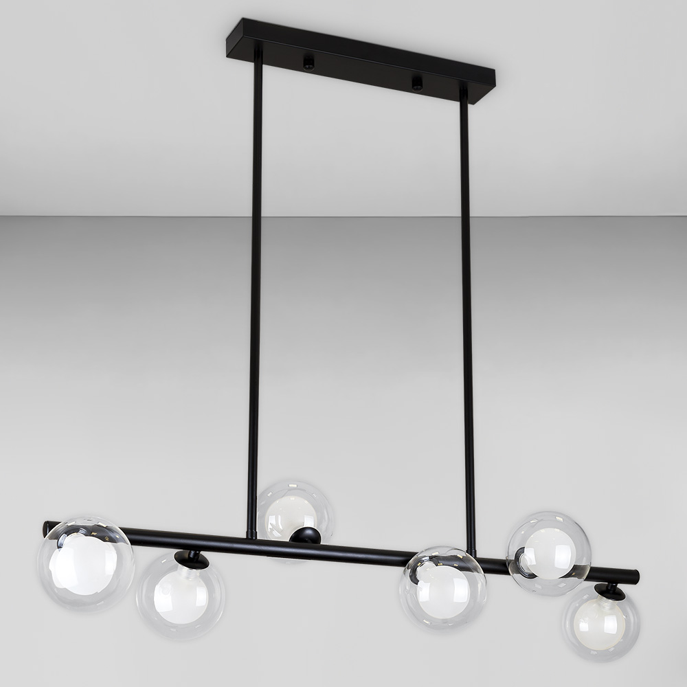 Люстра стельова Light House LS-18615-6 BK+CLWH чорний, плафон прозорий