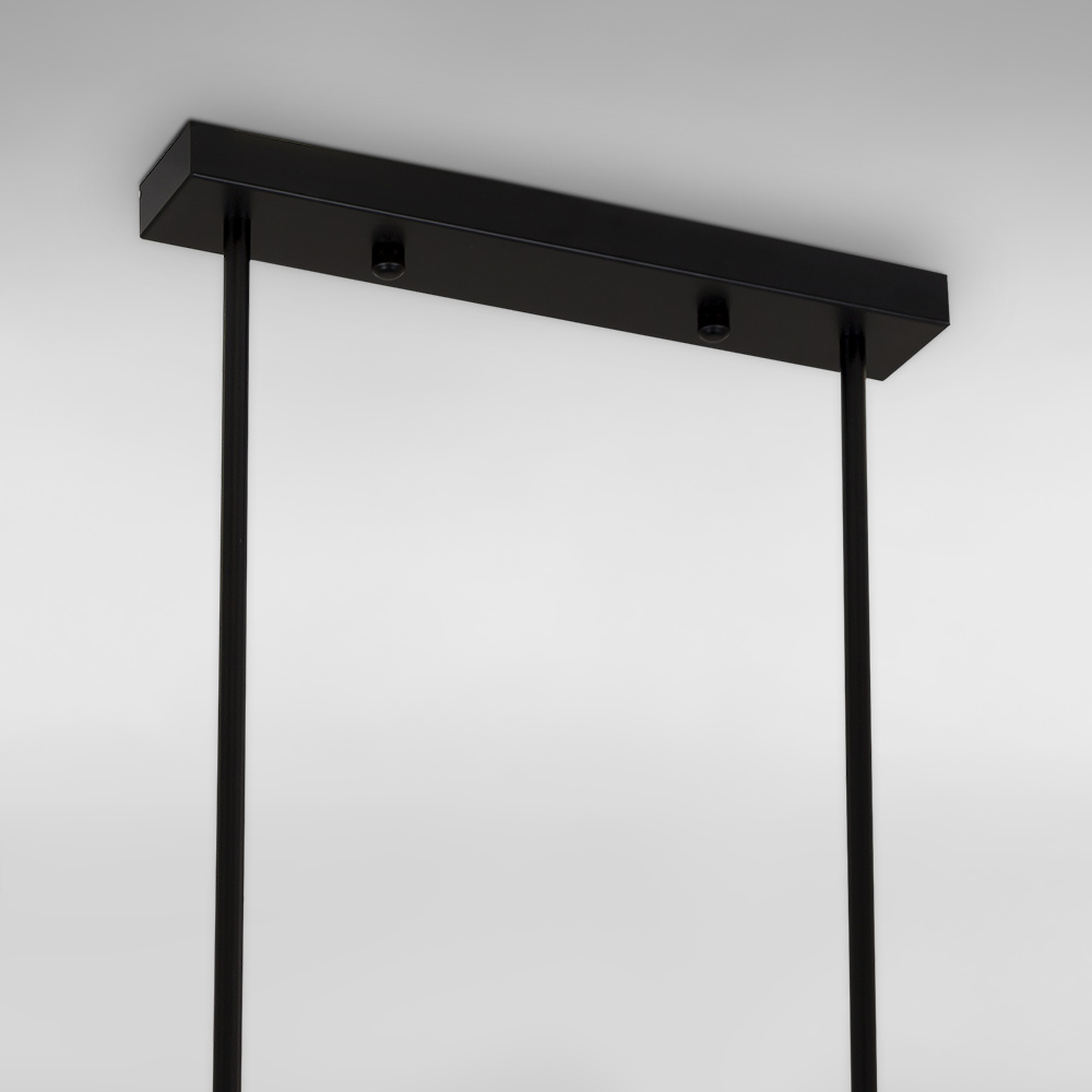 Декоративна стельова люстра на шість ламп у стилі Лофт зі скляними круглими плафонами на довгій планці.
