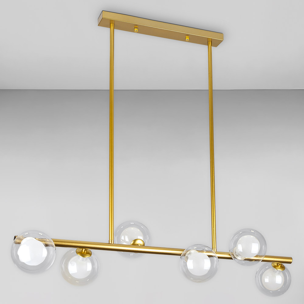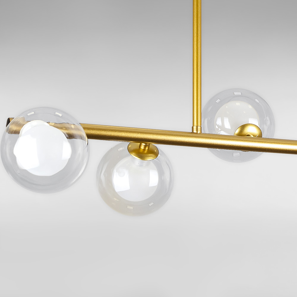 Декоративна стельова люстра на шість ламп у стилі Лофт зі скляними круглими плафонами на довгій планці.