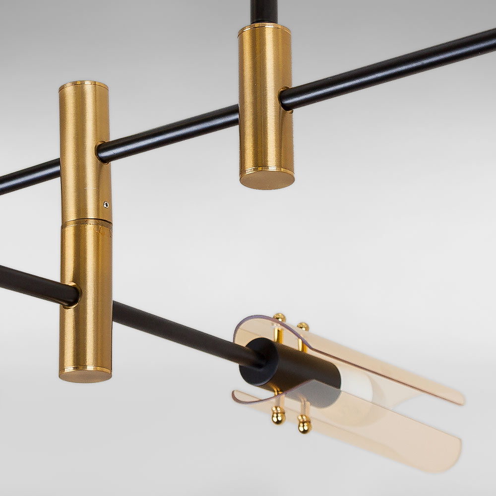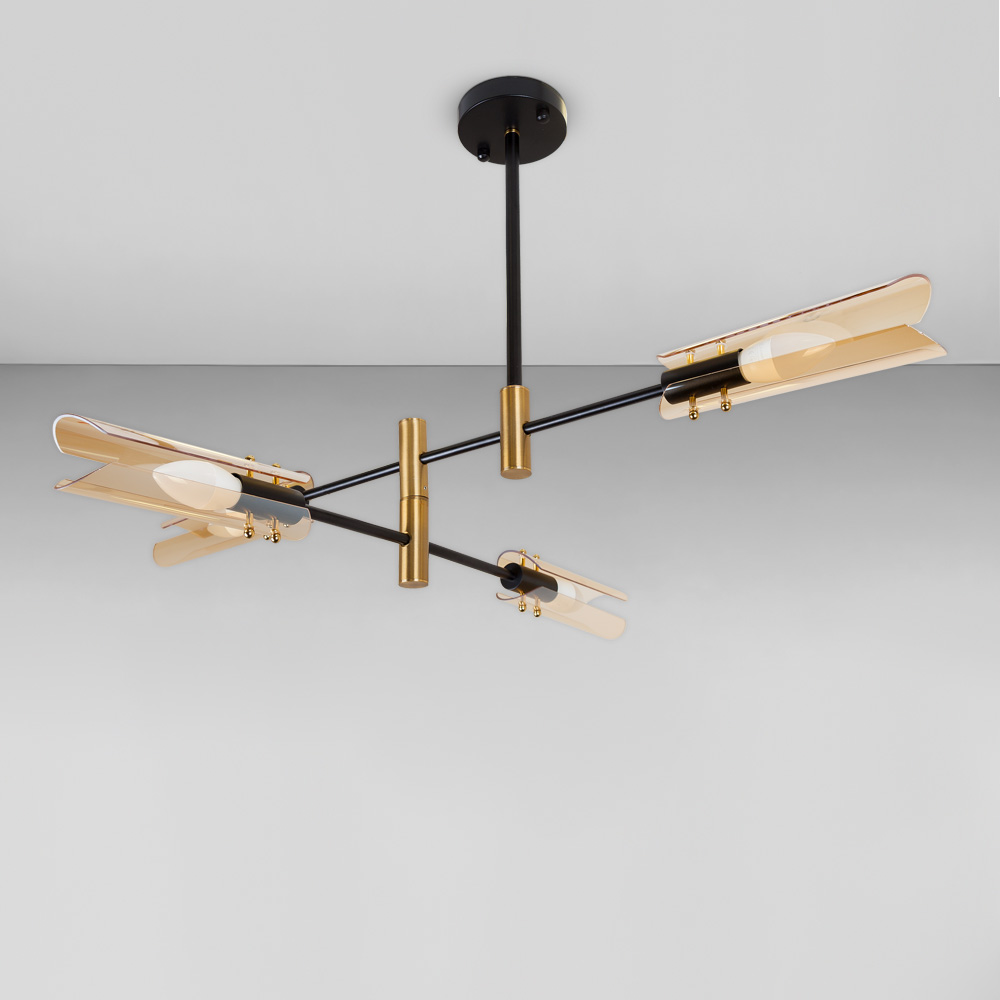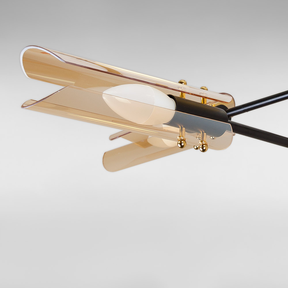 Люстра стельова Light House LS-18913-4 BR чорний + бронза, колір плафону янтарний