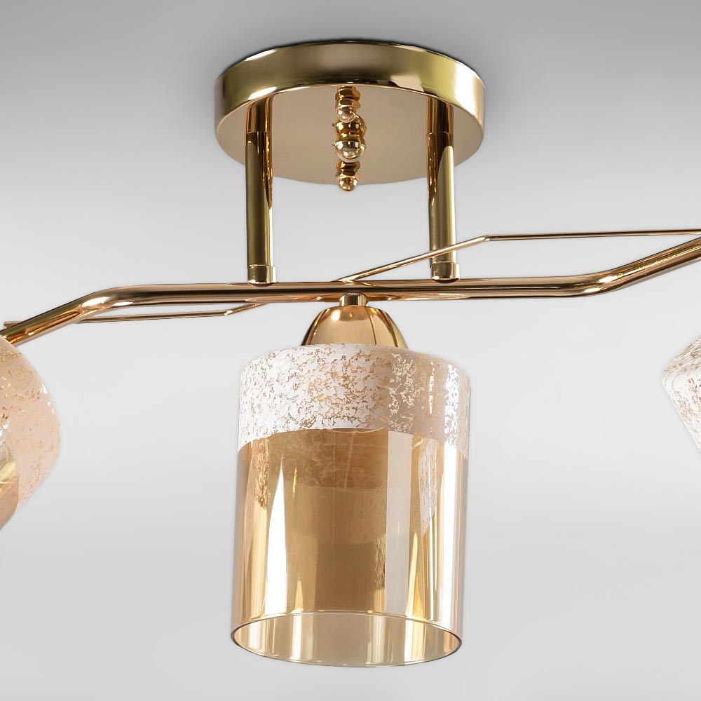 Люстра стельова Light House SC-18694/3 FG 570*170*250 золото, плафон бурштиновий з білим