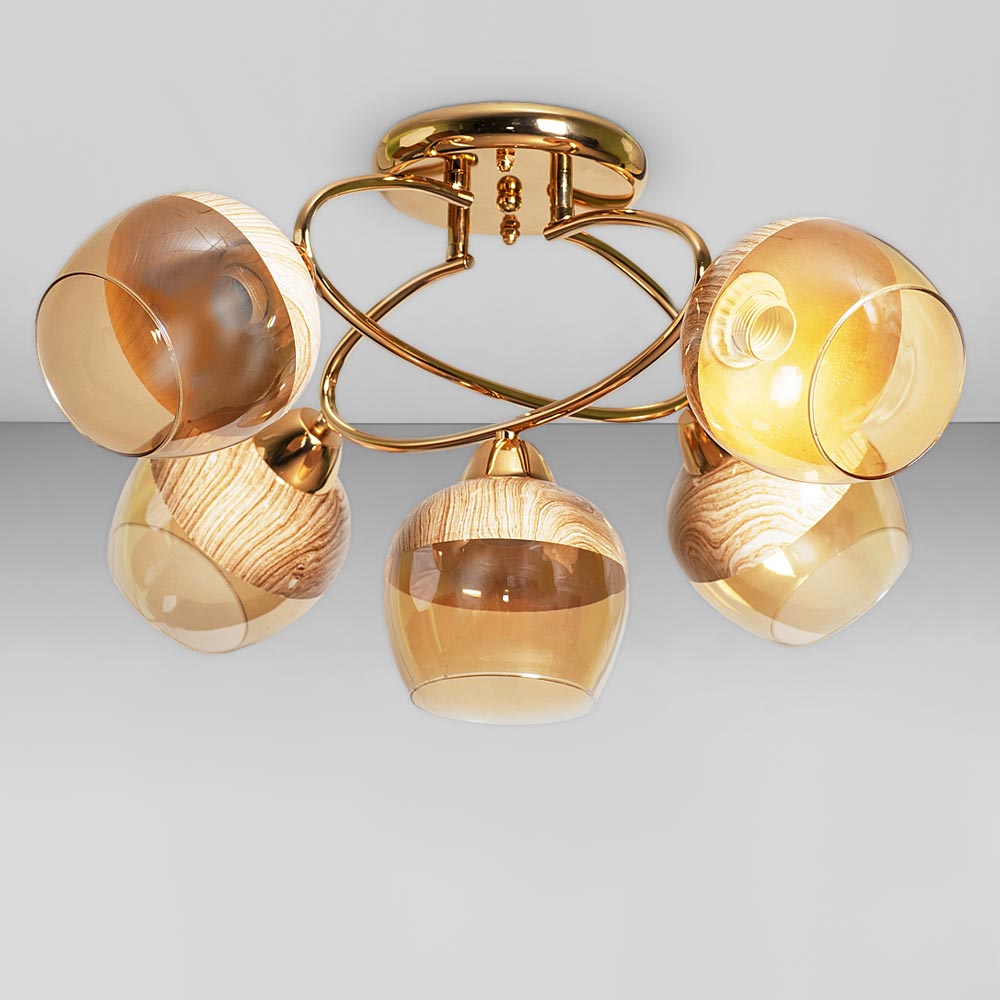 Люстра стельова Light House SC-18695/5 FG D590*310 золото, плафон бурштиновий з принтом