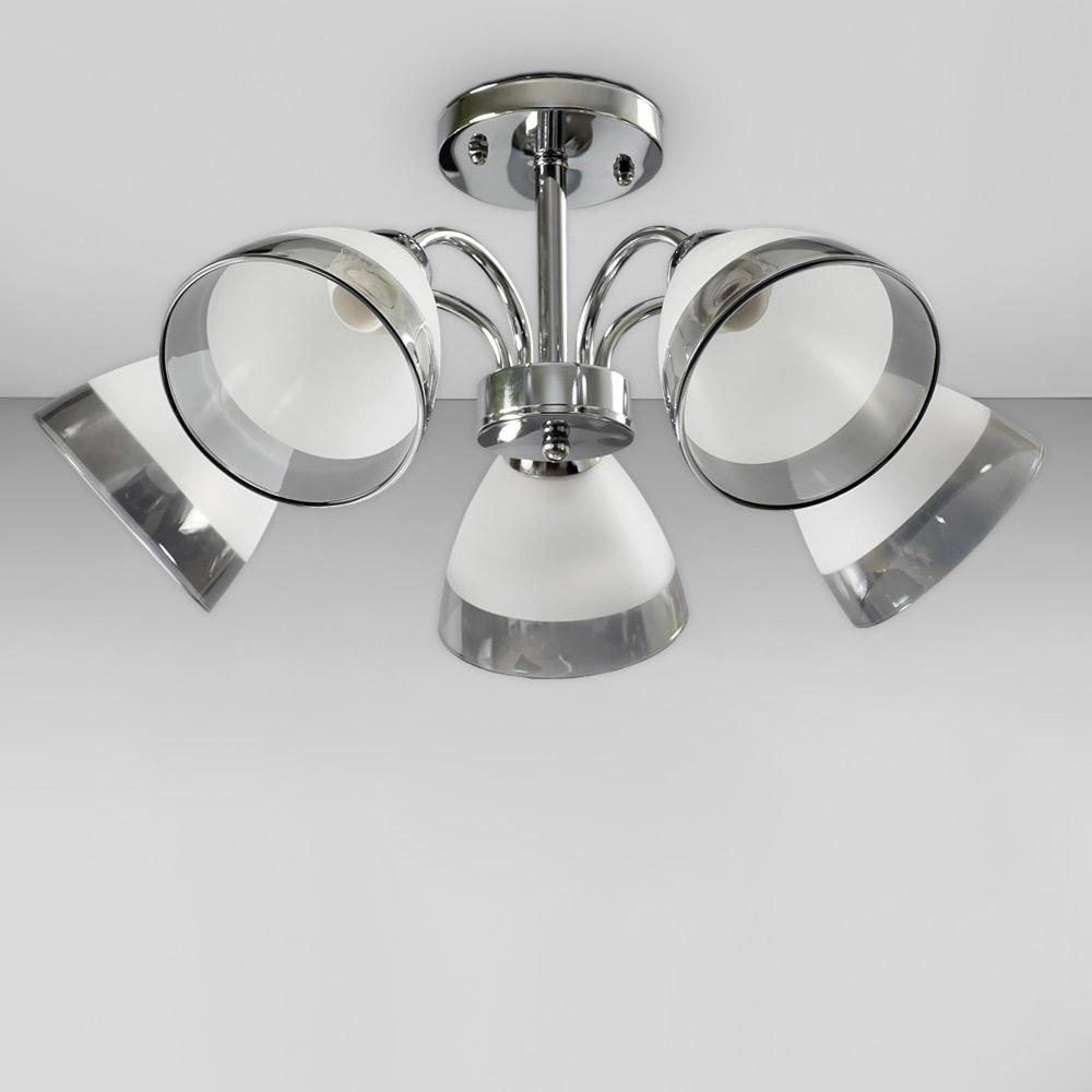 Люстра стельова Light House SC-18700/5 CR D550*250 хром, плафон білий + сірий