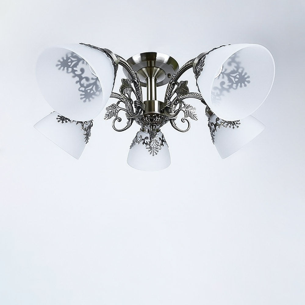 Люстра стельова Light House SH-19191/5 AB 600*600*220 E27 бронза, плафон білий з візерунком