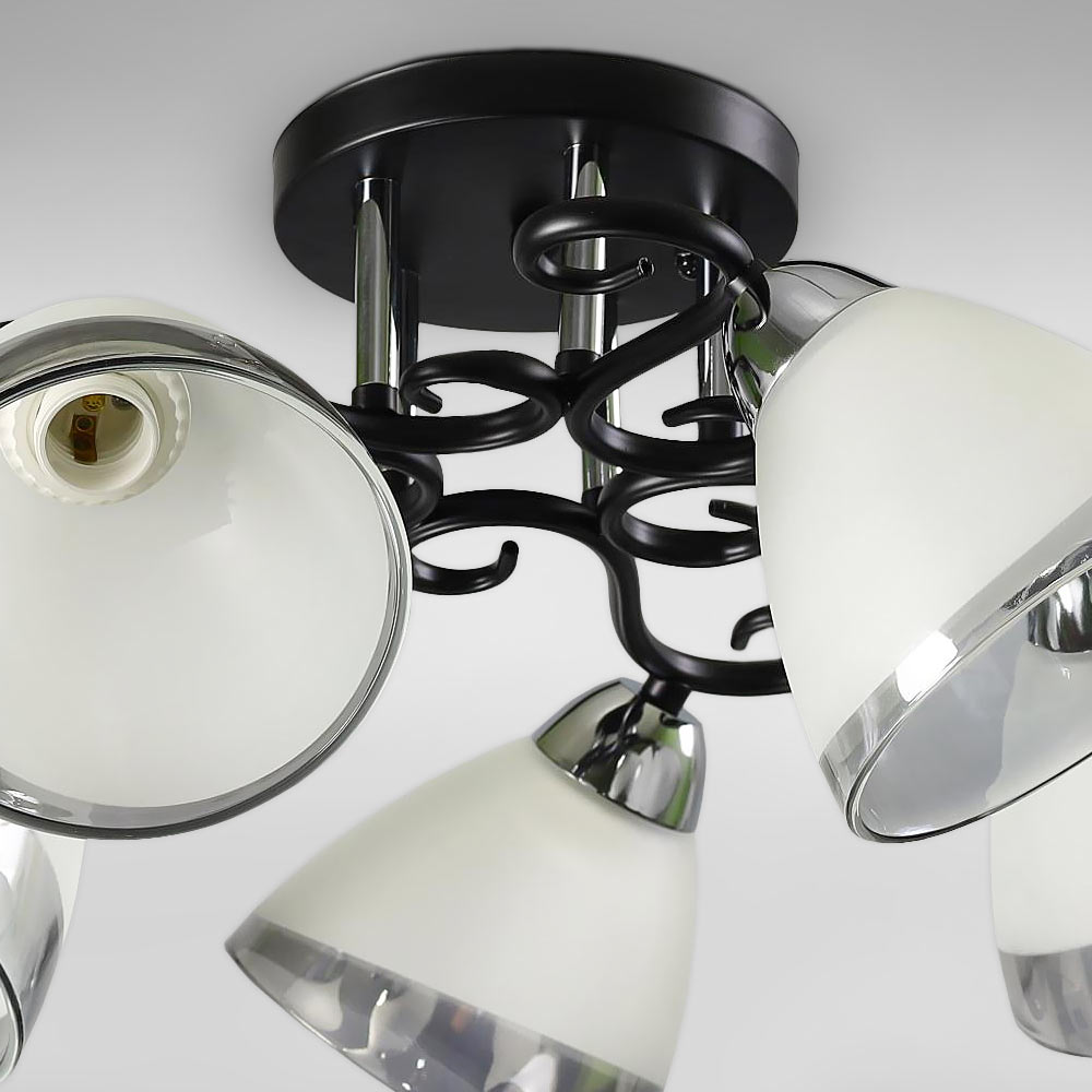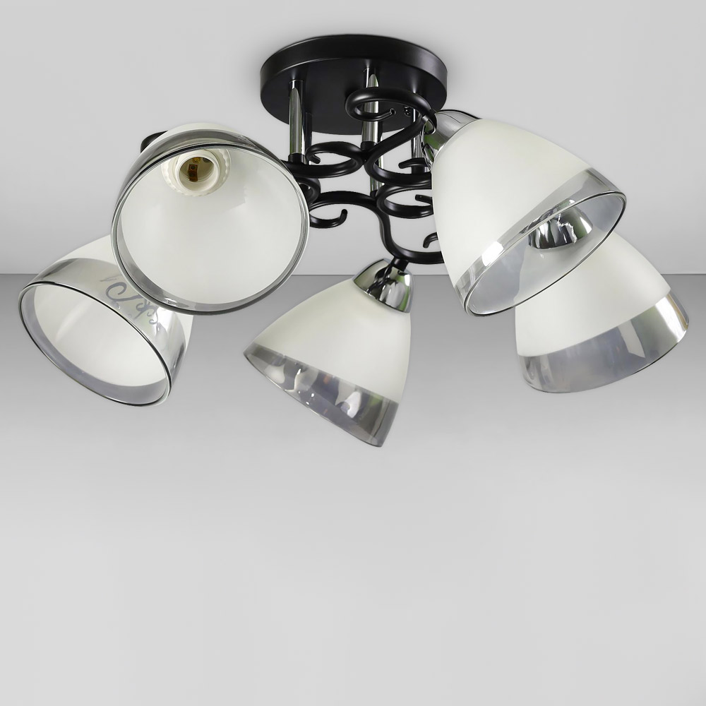 Люстра стельова Light House SC-18731/5 CR+BK D520*240 хром + чорний, плафон білий + сірий