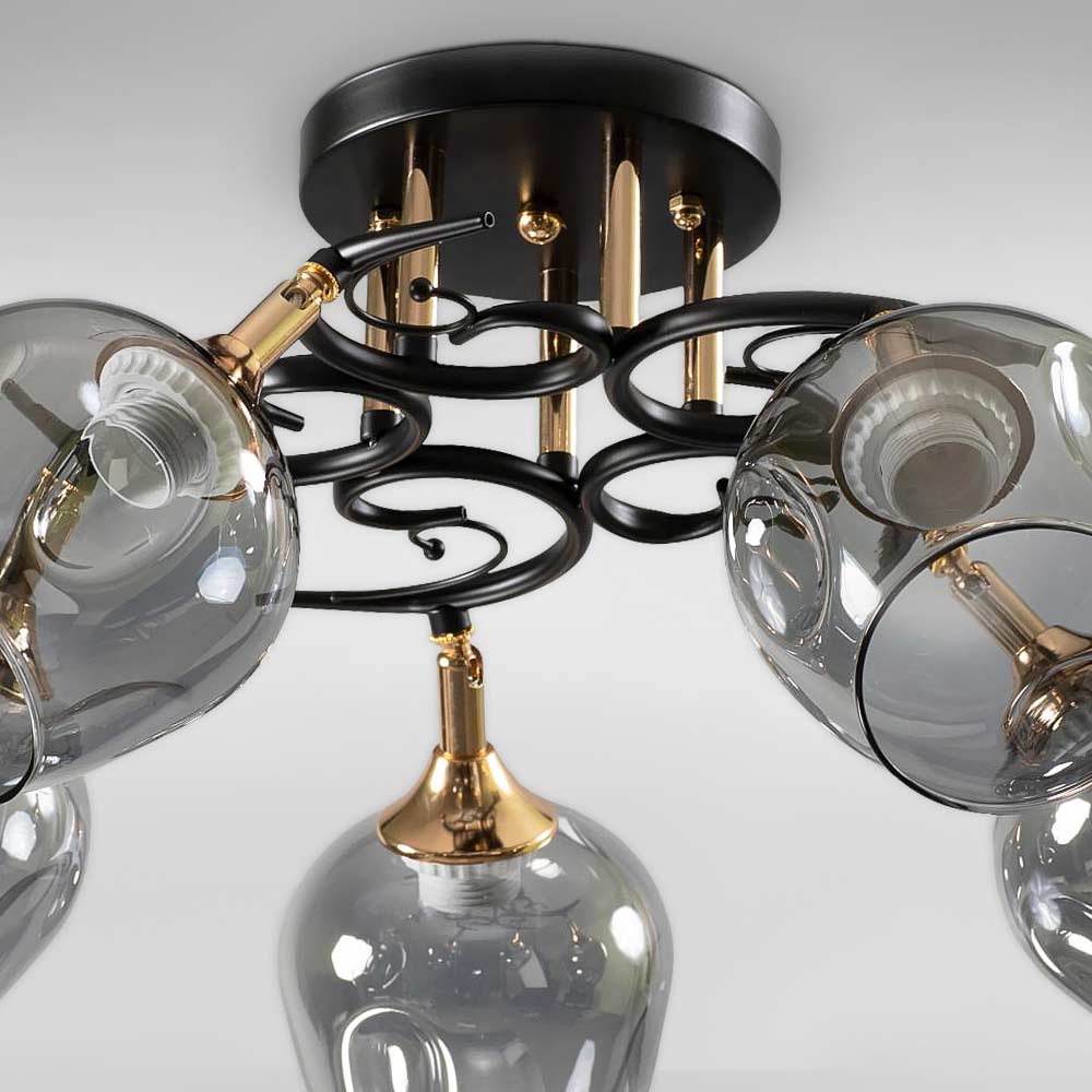 Люстра стельова Light House SC-18739/5 BK+FG 60*60*26 чорний + золото, колір плафону димчастий
