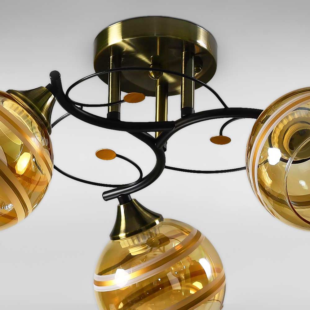 Люстра стельова Light House SC-18740/3 BK+AB D450*240 бронза + чорний, колір плафону янтарний