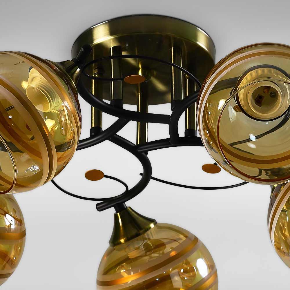 Люстра стельова Light House SC-18740/5 BK+AB D530*240 бронза + чорний, колір плафону янтарний