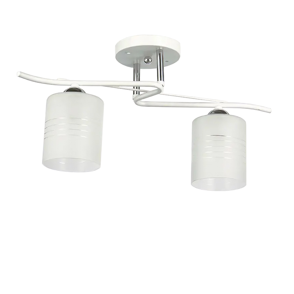 Стильна стельова люстра на дві лампи зі скляними плафонами циліндричної форми зі смужками.