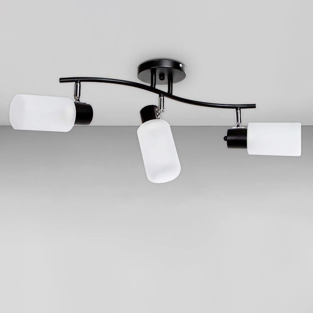 Стельова люстра на три лампи зі скляними плафонами форми циліндра з поворотним механізмом.