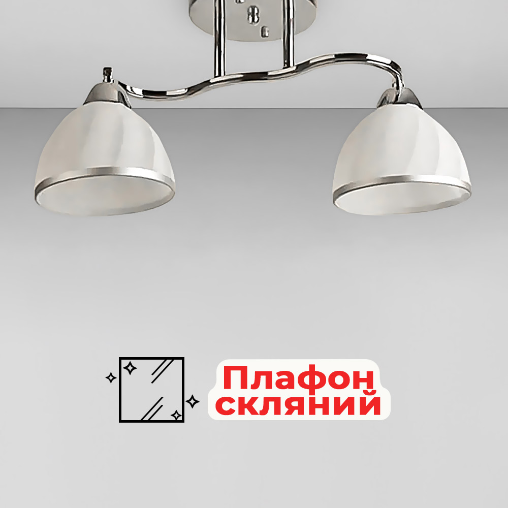 Люстра стельова Light House SH-19283/2 CR 460*150*220 E27*2 колір хром, плафони білі з облямівкою