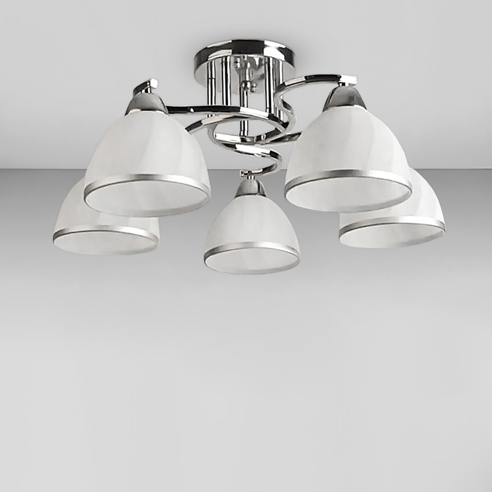 Люстра стельова Light House SH-19283/5 CR 560*560*220 E27*5 колір хром, плафони білі з облямівкою