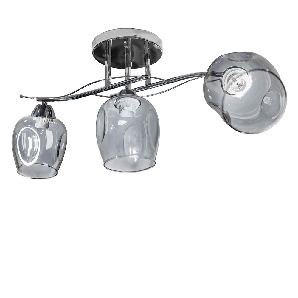 Стильна стельова люстра на три лампи зі скляними фігурними плафонами.