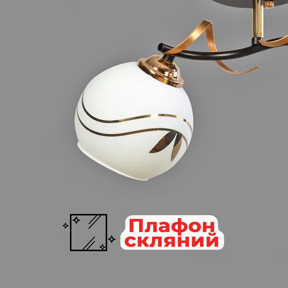 Немає відгуків про товар Люстра стельова Light House SH-19394/2 BK 420*190*220 колір чорний + золото, плафони білі з візерунком