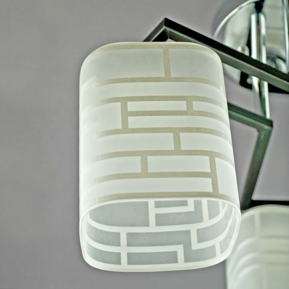 Люстра стельова Light House SH-19399/3 CR+BK 370*370*240 хром + чорний, плафони білі з візерунком