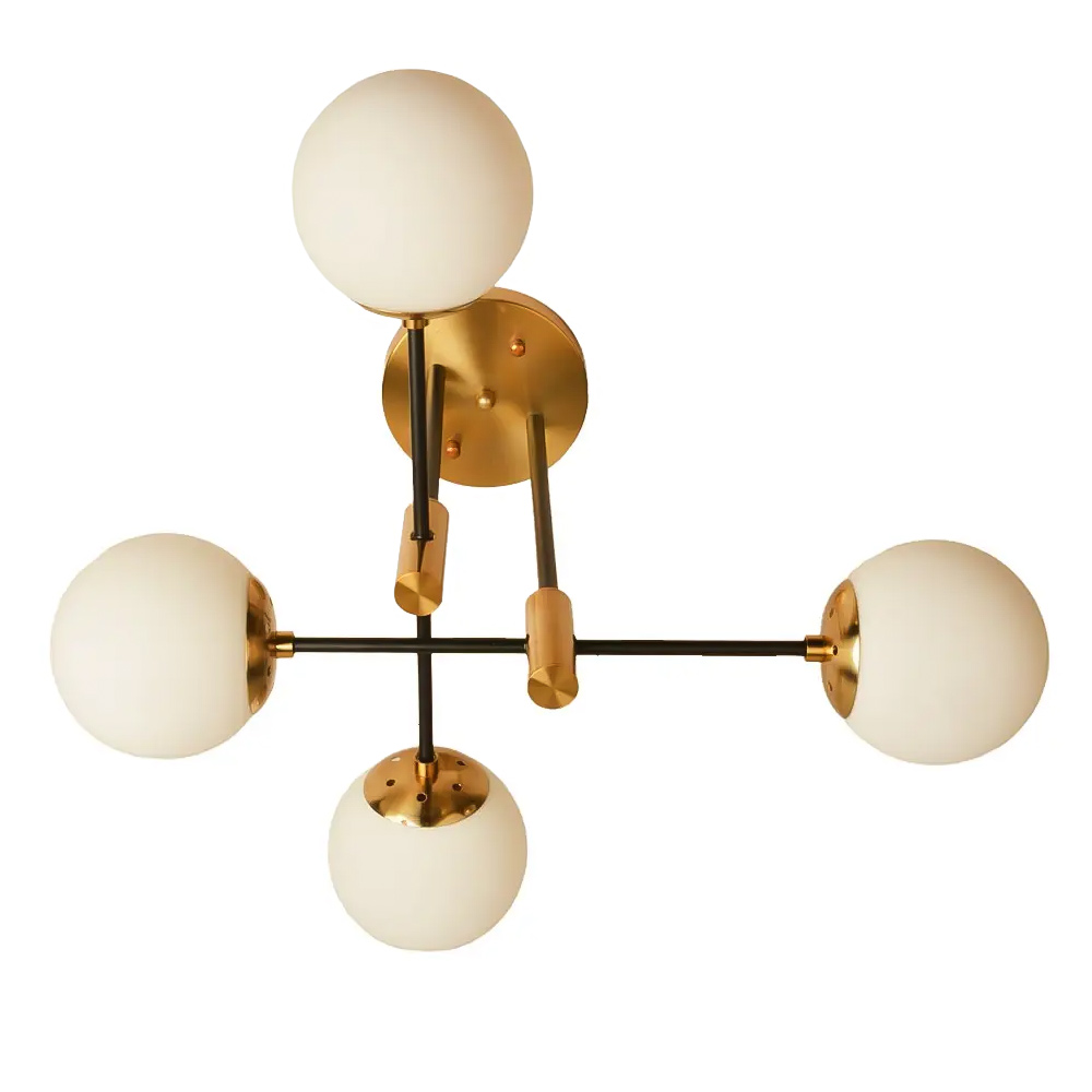 Стельова люстра в стилі Лофт на чотири плафони форми куль які розсіюють світло рівномірно і створюють приємну атмосферу, має стильний і сучасний дизайн, що надає шарму та елегантності вашому простору. Вона підходить для різних інтер'єрів, чи то сучасний, класичний чи інший стиль.
