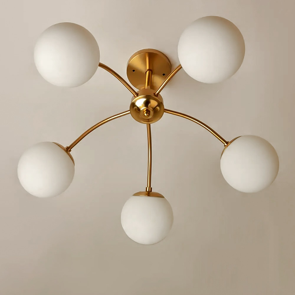 Стельова люстра в стилі Лофт на п'ять плафонів форми кулі які розсіюють світло рівномірно і створюють приємну атмосферу, має стильний і сучасний дизайн, що надає шарму та елегантності вашому простору. Вона підходить для різних інтер'єрів, чи то сучасний, класичний чи інший стиль.