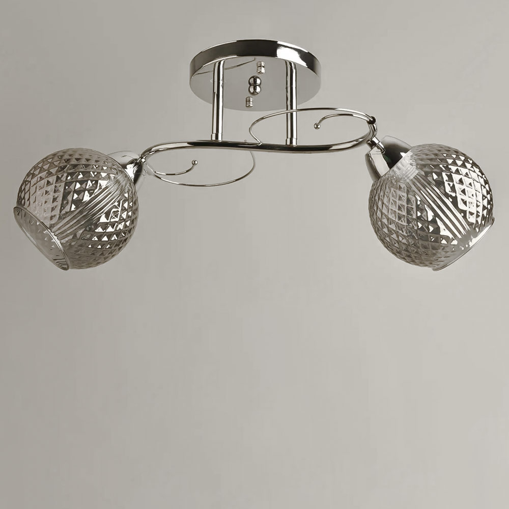 Стельова люстра в сучасному стилі на два плафони круглої форми, які розсіюють світло рівномірно і створюють приємну атмосферу, має стильний і сучасний дизайн, що надає шарму і елегантності вашому простору. Вона підходить для різних інтер'єрів, чи то сучасний, класичний чи інший стиль.
