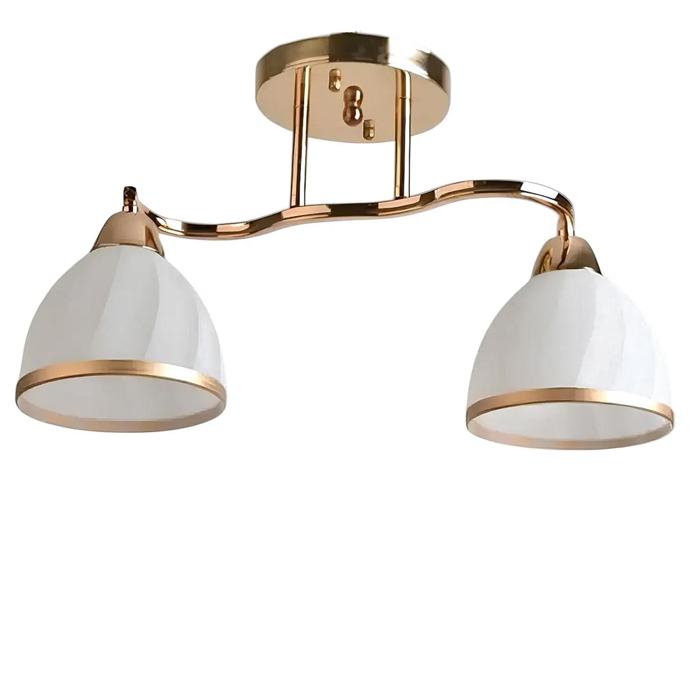 Про товар Люстра стельова Light House SH-20090/2 FG 460*150*220 E27*2 золото, плафон білий з облямівкою