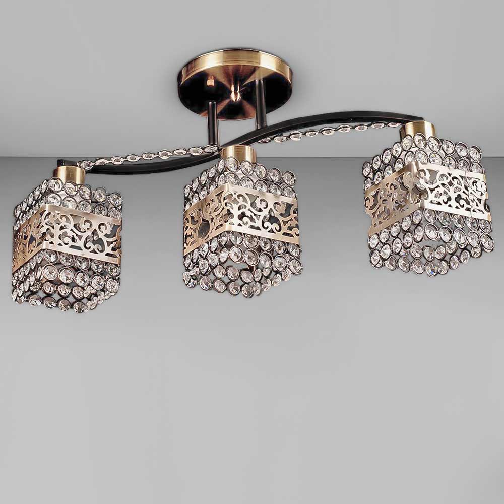 Сучасна стельова люстра на три лампи, оснащена металевими плафонами прямокутної форми з кришталевими вставками: що забезпечить вишуканий блиск і створить цікаву гру світла та тіні при включеному джерелі світла. Найкраще ця люстра підійде для приміщень із загальною площею 9 м², при використанні ламп 6 Вт (LED) або 60 Вт (стандартна).