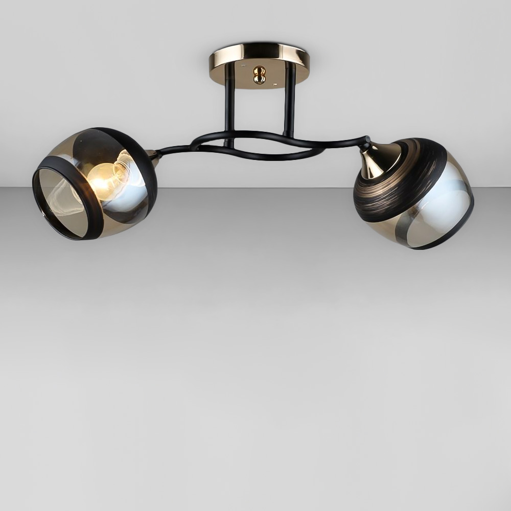 Люстра стельова на дві лампи зі скляними плафонами, які розсіюють світло рівномірно і створюють приємну атмосферу, має стильний та сучасний дизайн, що надає шарму та елегантності вашому простору. Вона підходить для різних інтер'єрів, чи то сучасний, класичний чи інший стиль.
