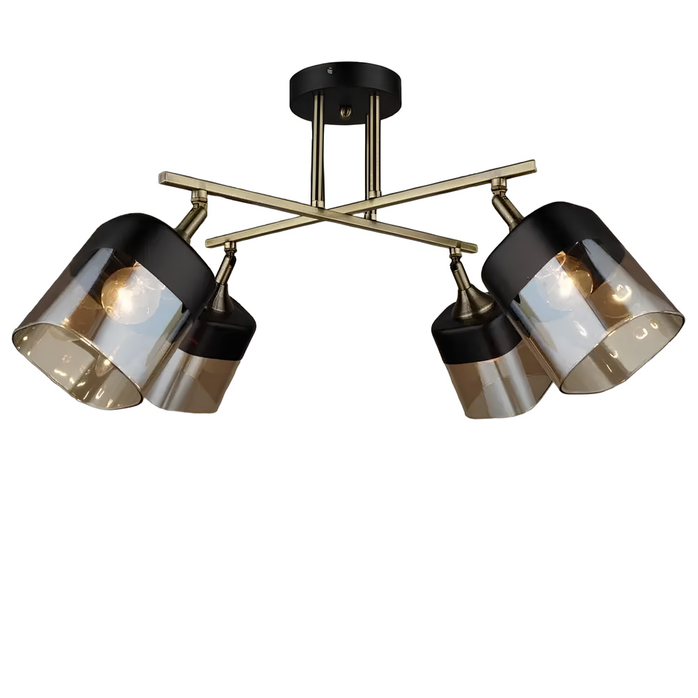 Люстра стельова Light House SR-18996/4 AB D730*H300 чорний+бронза, плафон чорний+бурштиновий