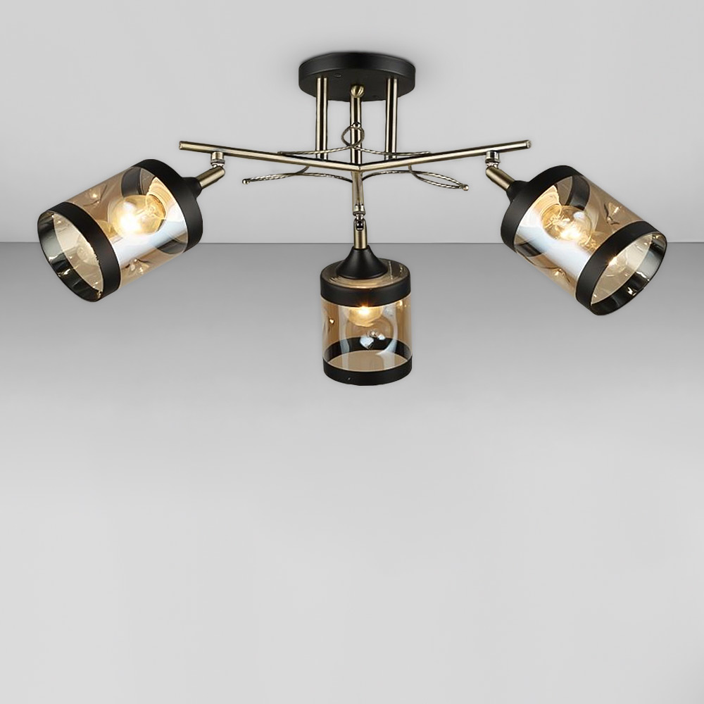 Люстра стельова на три лампи зі скляними плафонами циліндричної форми з поворотним механізмом, які розсіюють світло рівномірно і створюють приємну атмосферу, має стильний і сучасний дизайн, що надає шарму та елегантності вашому простору. Вона підходить для різних інтер'єрів, чи то сучасний, класичний чи інший стиль.