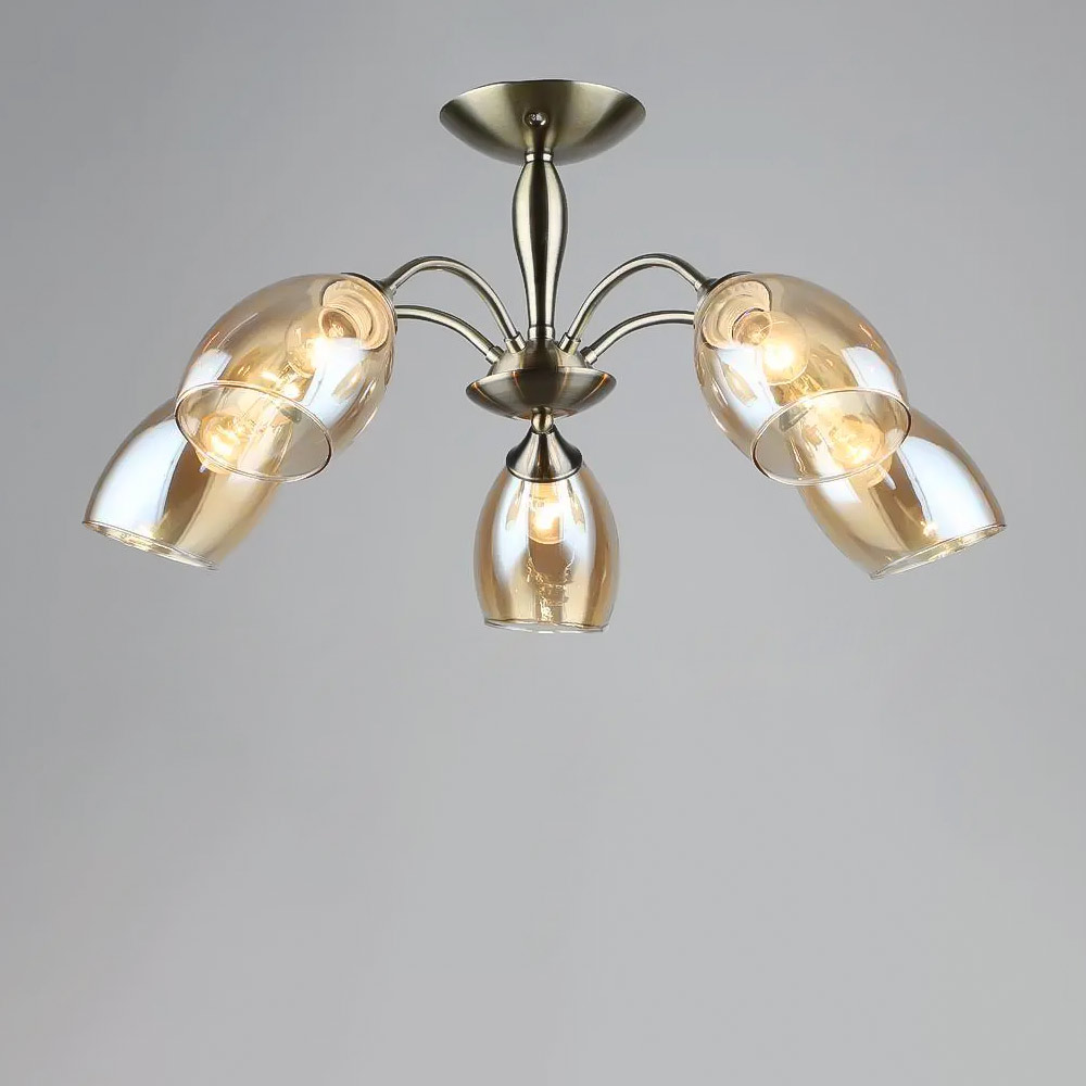 Люстра стельова Light House SR-19203/5 AB D680*H300 E27 бронза, плафон бурштиновий