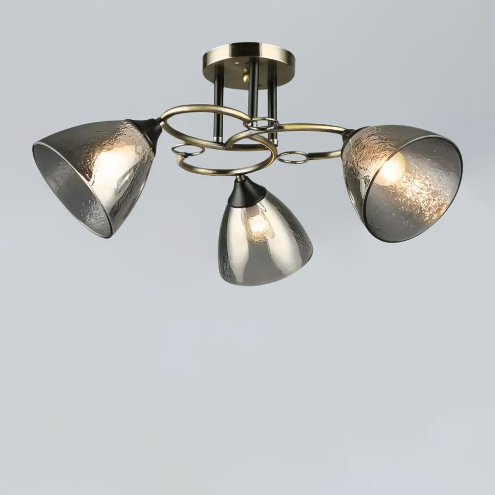 Люстра стельова Light House SR-19326/3 AB+BK D560*H260 E27 колір бронза + чорний, плафони сірі