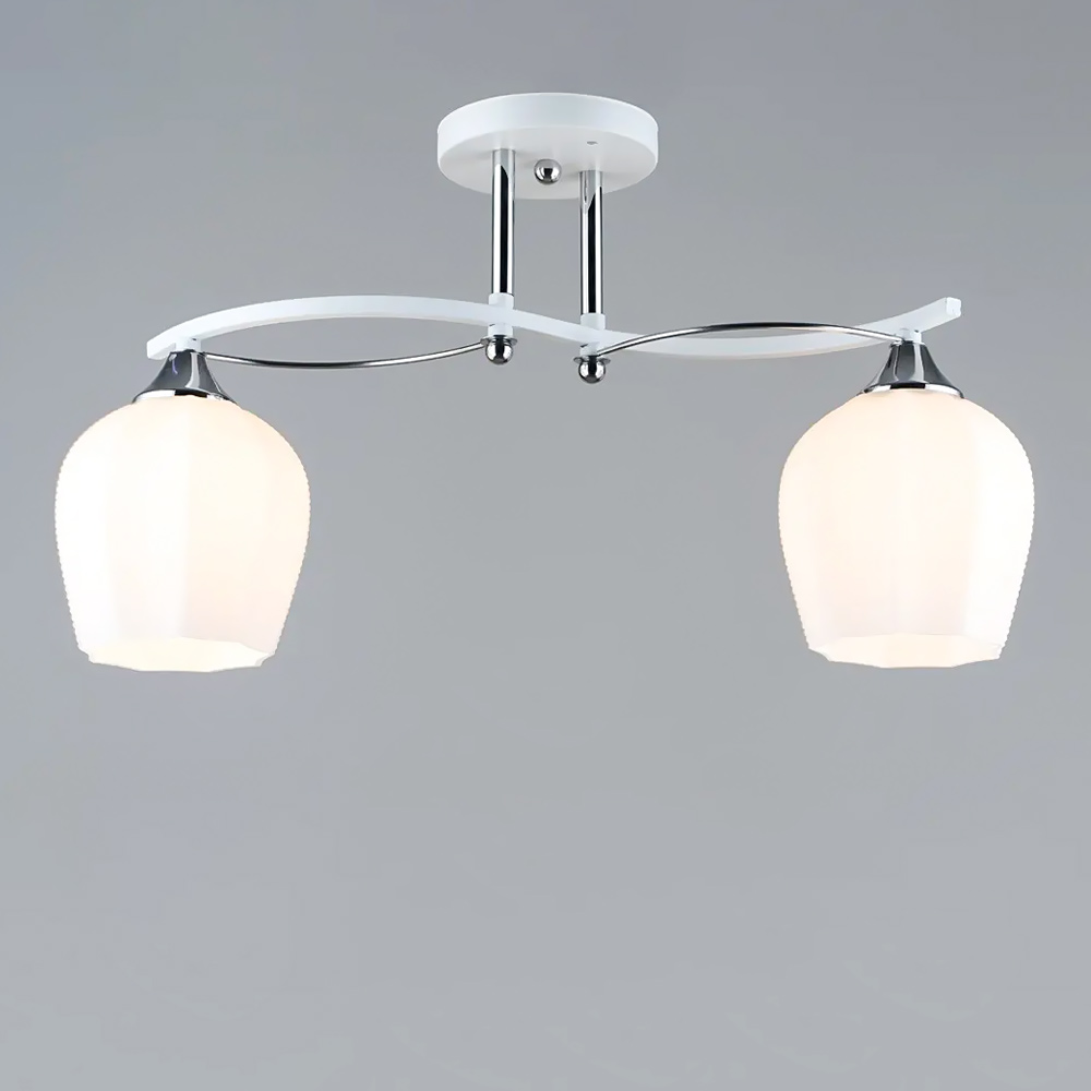 Стильна стельова люстра на дві лампи зі скляними декоративними плафонами.