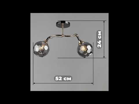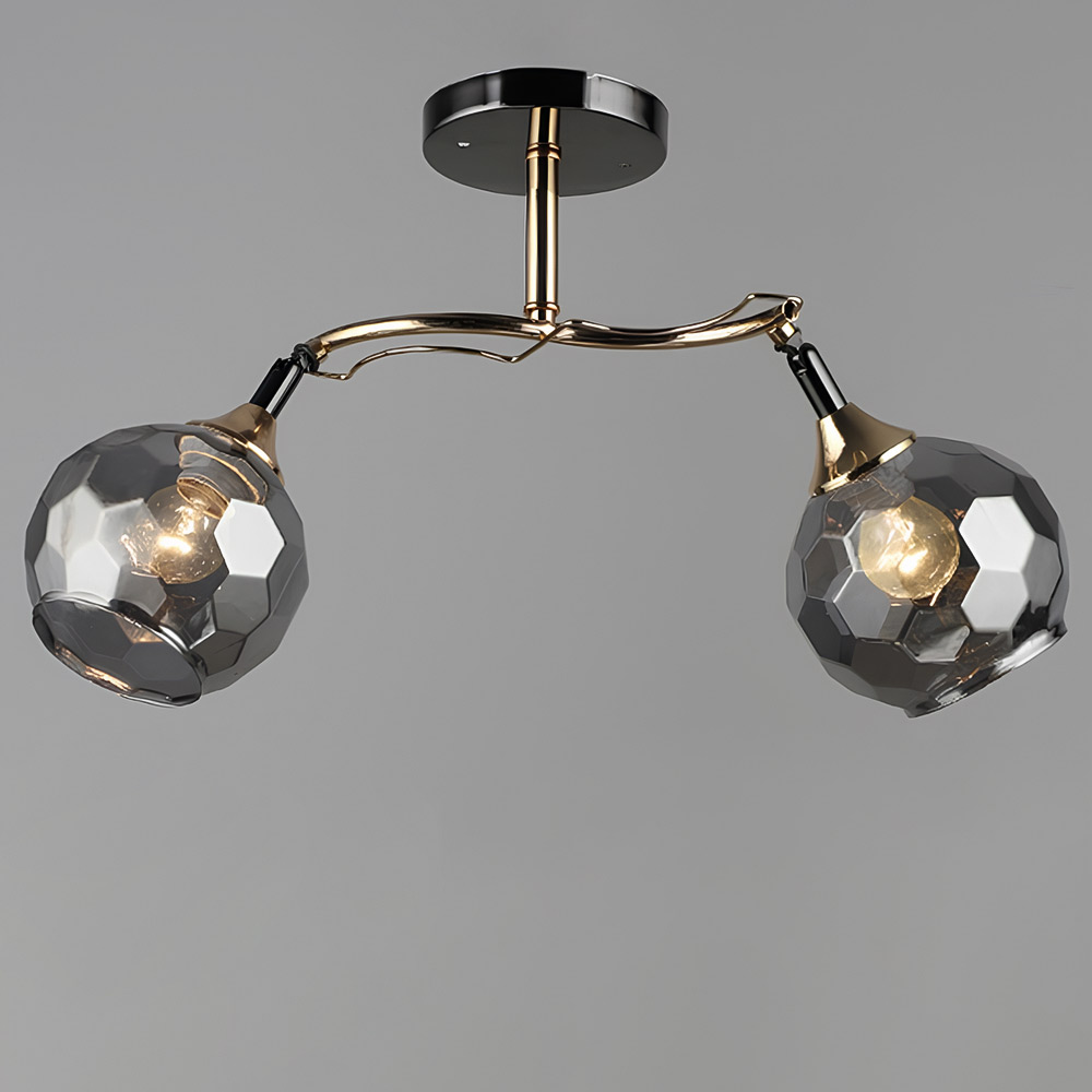 Стильна стельова люстра на дві лампи із скляними поворотними плафонами круглої форми.