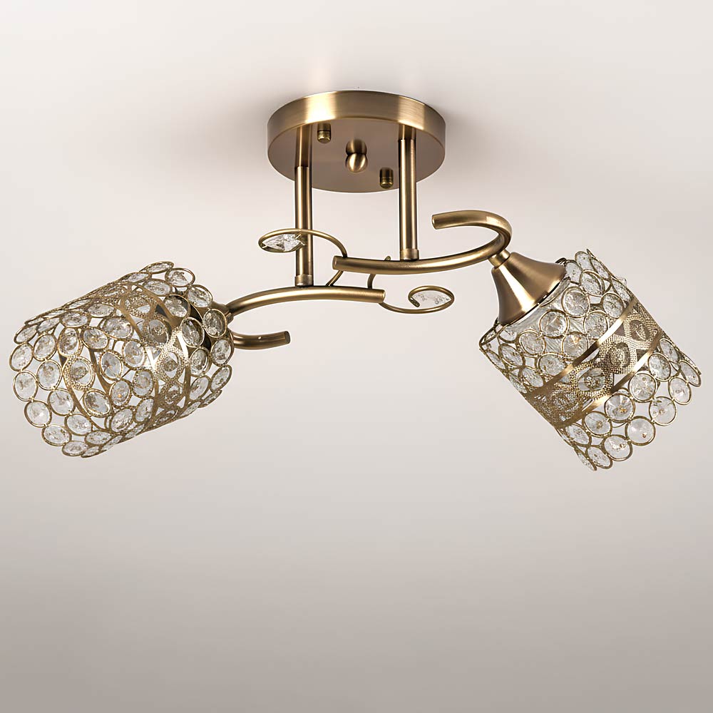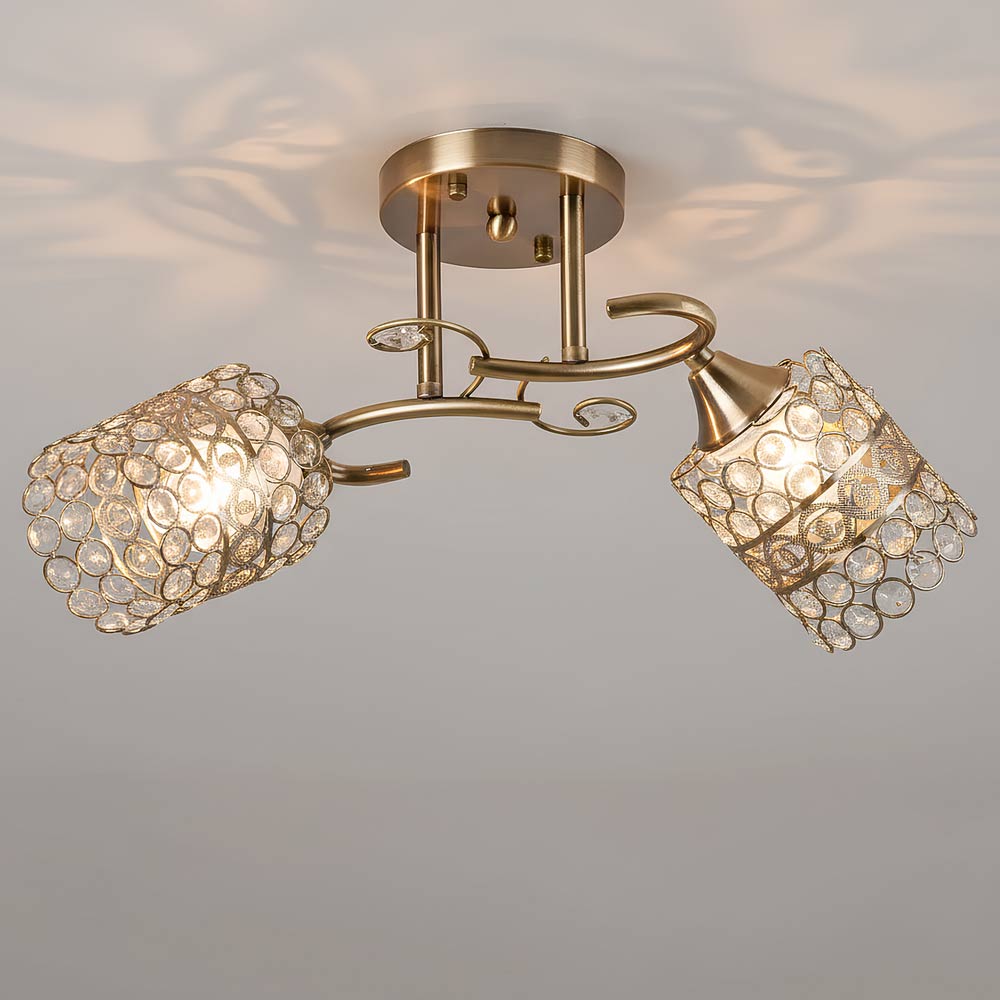 Сучасна стельова люстра на дві лампи, оснащена металевими плафонами циліндричної форми з кришталевими вставками: що забезпечить вишуканий блиск і створить цікаву гру світла та тіні при включеному джерелі світла. Найкраще ця люстра підійде для приміщень із загальною площею 6 м², при використанні лампочок 6 Вт (LED) або 60 Вт (стандартна).