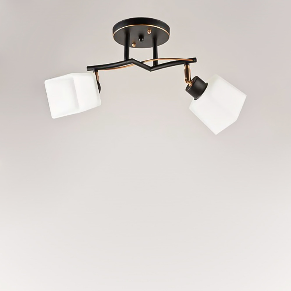Стельова люстра на дві лампи з квадратними поворотними плафонами.