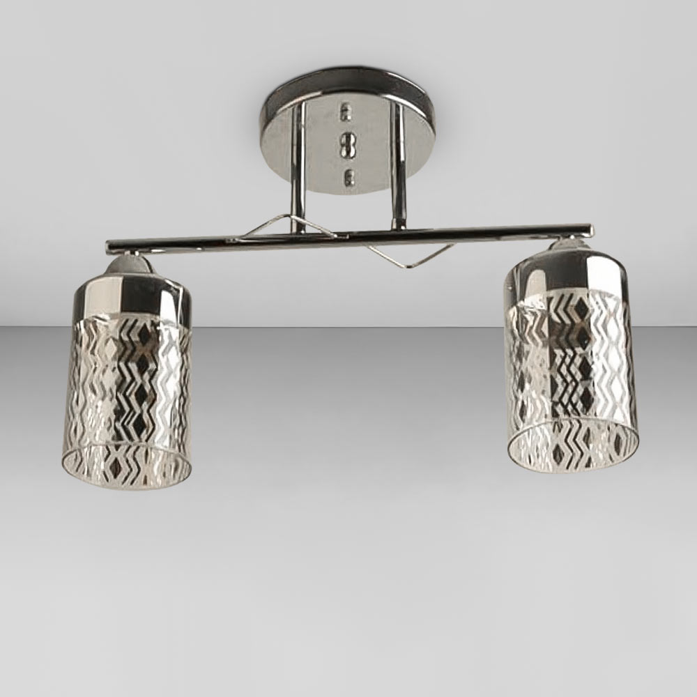Люстра стельова на два плафони циліндричної форми які розсіюють світло рівномірно і створюють приємну атмосферу, має стильний і сучасний дизайн, що надає шарму та елегантності вашому простору. Вона підходить для різних інтер'єрів, чи то сучасний, класичний чи інший стиль.