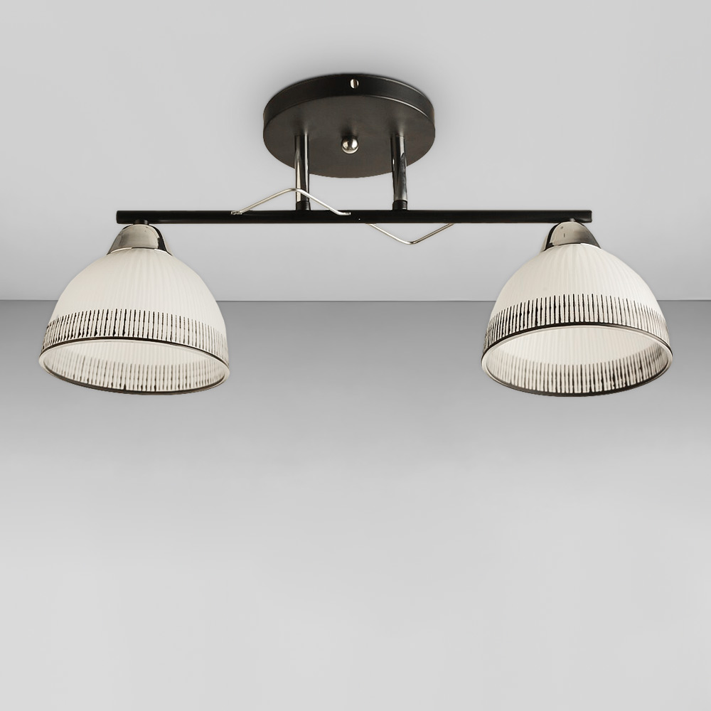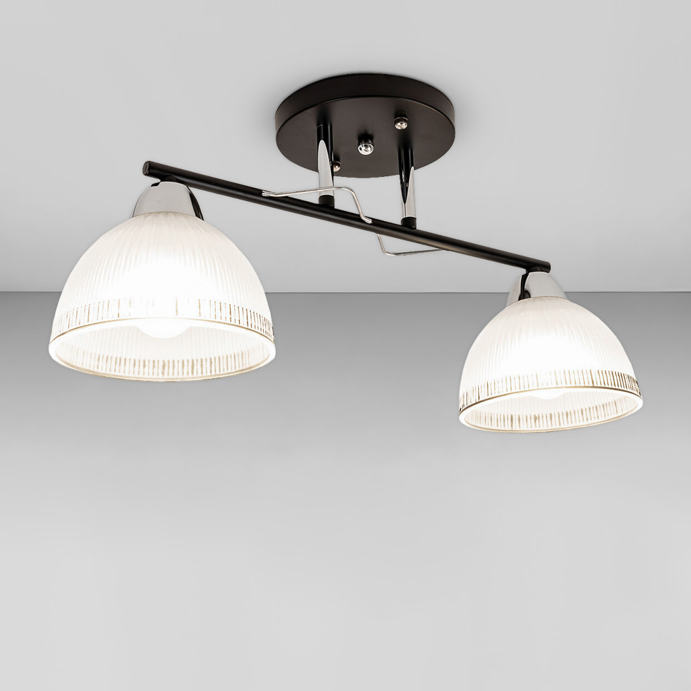 Люстра стельова на два плафони форми купола які розсіюють світло рівномірно і створюють приємну атмосферу, має стильний і сучасний дизайн, що надає шарму і елегантності вашому простору. Вона підходить для різних інтер'єрів, чи то сучасний, класичний чи інший стиль.