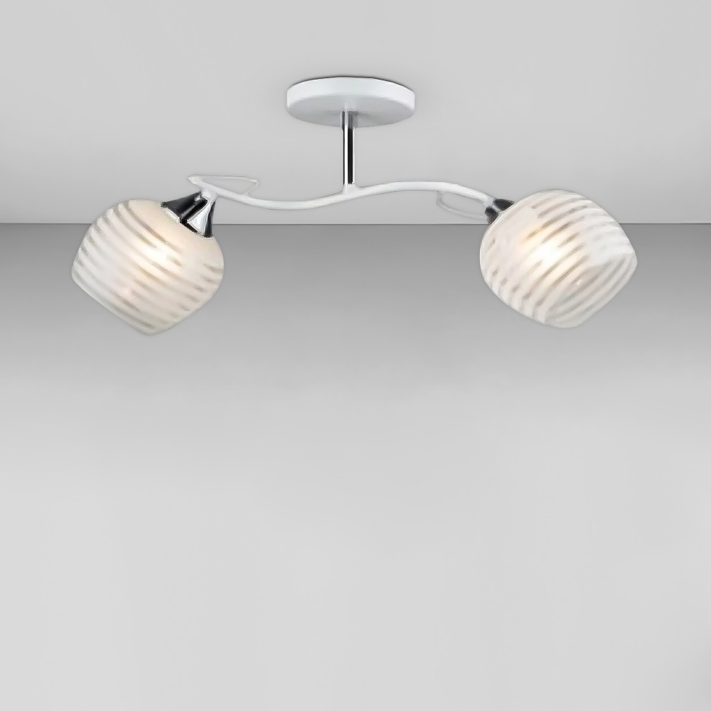 Люстра стельова на два плафони круглої форми, які розсіюють світло рівномірно і створюють приємну атмосферу, має стильний і сучасний дизайн, що надає шарму та елегантності вашому простору. Вона підходить для різних інтер'єрів, чи то сучасний, класичний чи інший стиль.