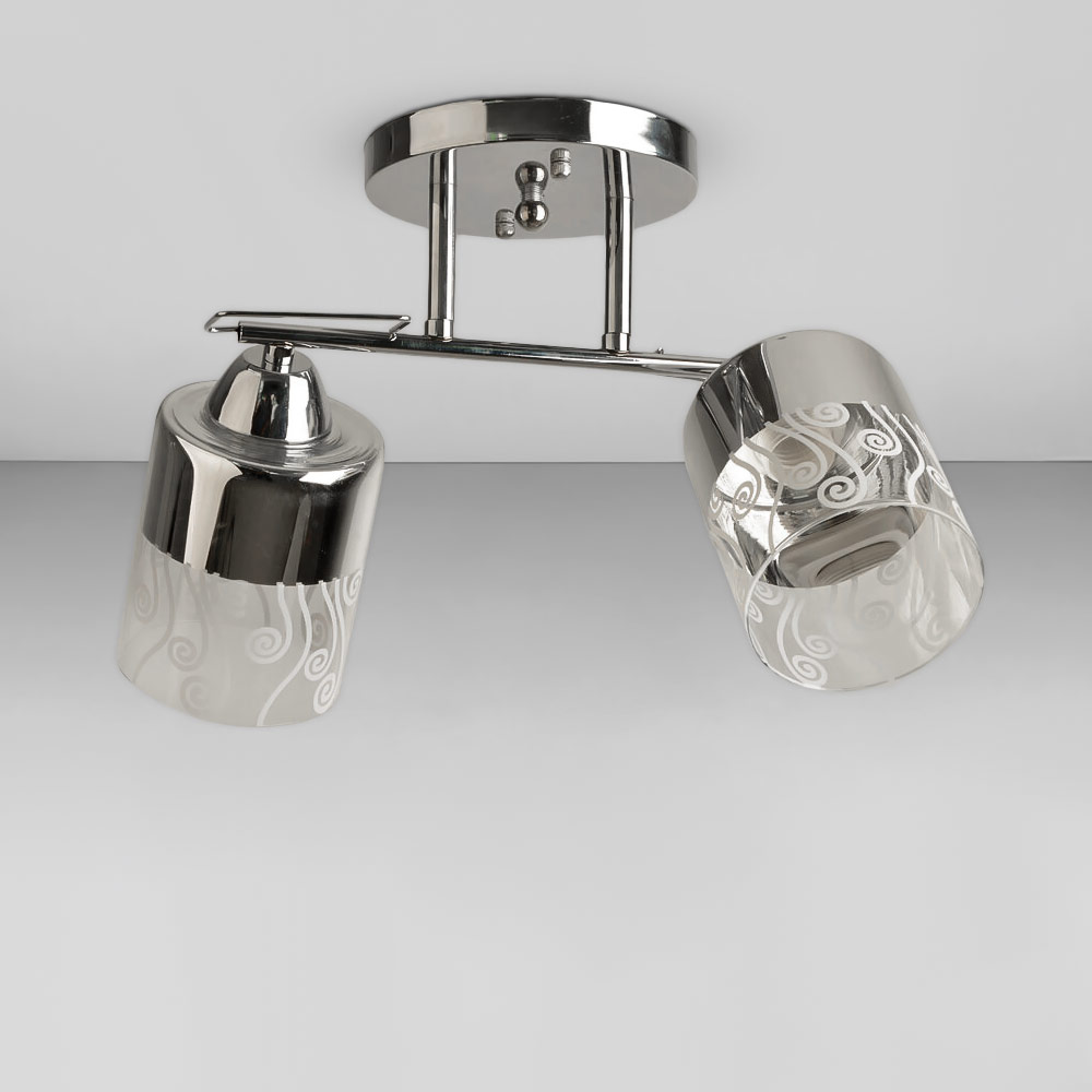 Стельова люстра на два плафони циліндричної форми, які розсіюють світло рівномірно і створюють приємну атмосферу, має стильний і сучасний дизайн, що надає шарму і елегантності вашому простору. Вона підходить для різних інтер'єрів, чи то сучасний, класичний чи інший стиль.