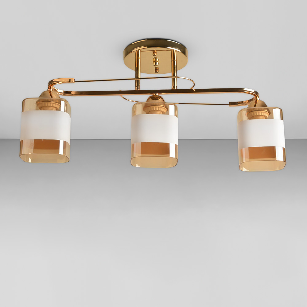Люстра стельова Light House SRS-18944/3А золото, плафон білий + янтарний